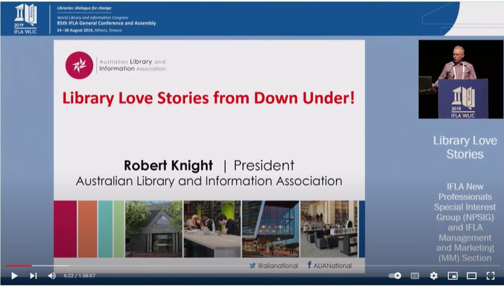 The NSW campaign was so successful that in 2007, LLD went national under ALIA and hasn’t looked back. It also went from a public library campaign to one every sector could adopt. Victoria wrote a reflection on LLD in 2011 which gives you more details about the early days and another friend, Robert Knight, gave a presentation on LLD as part of Library Love Stories at IFLA WLIC 2019 in Athens. Watch it on You Tube and get a sense of what has been achieved in a little over ten years. (Robert is the first speaker).