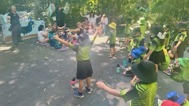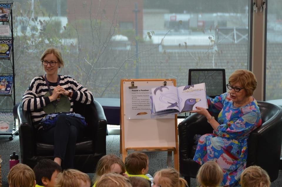 This year’s book was Bowerbird Blues by Aura Parker, and because attention to detail is important, I immediately went into ‘what will I wear mode’. Then the reality that I have never been a children’s librarian, and have had limited practice with the storytelling gig hit, and an inventory of what blue outfits I had in my wardrobe paled into insignificance. I needed help; I turned to Karen!